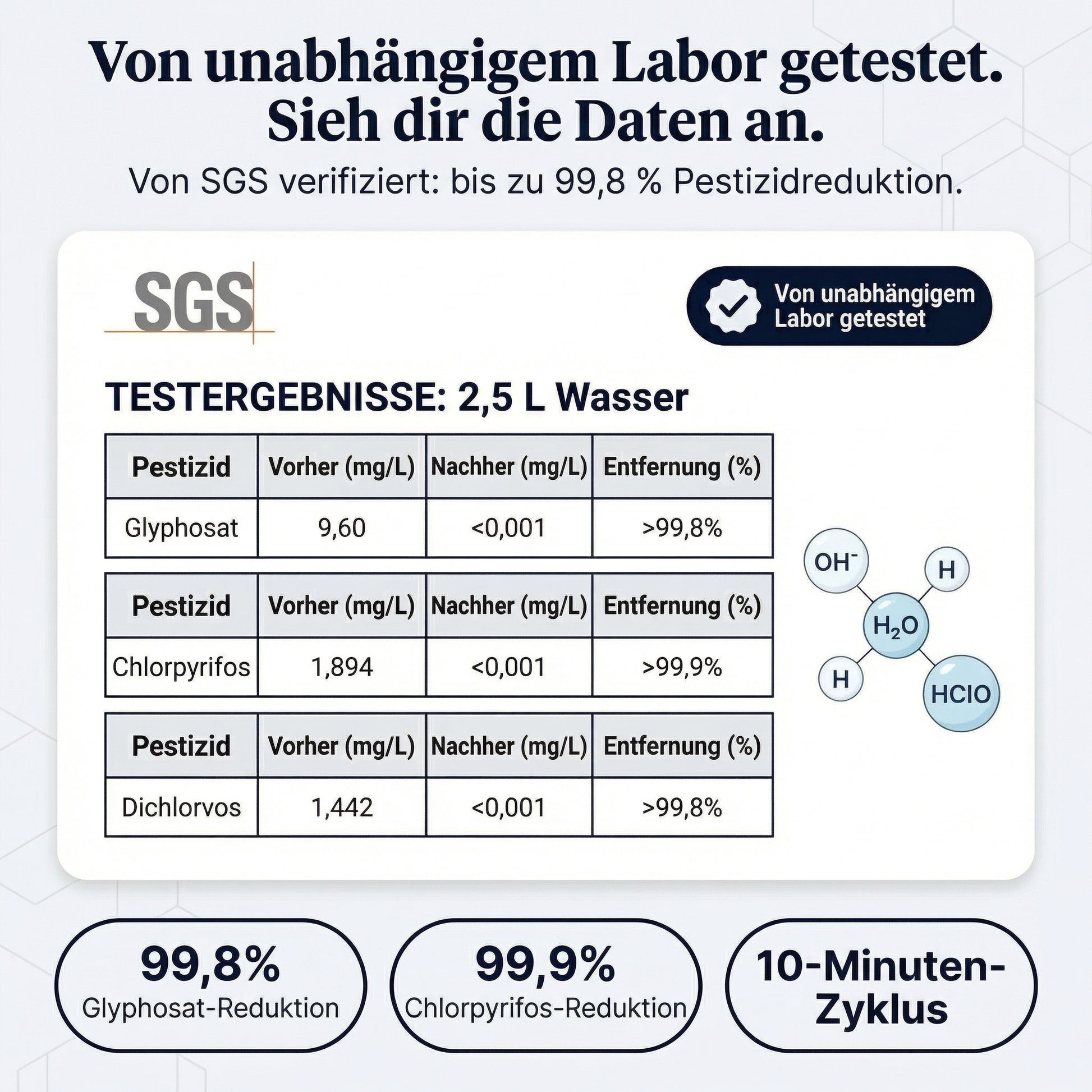 Die Ergebnisse wurden von SGS Schweiz, dem weltweit führenden Prüfunternehmen, verifiziert und durch 3 unabhängige, peer-reviewed Studien bestätigt (Food Chemistry, Molecules, Journal of Food Science).