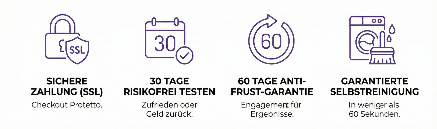 Absolut. Einfach Wasser und einen Tropfen Spülmittel hineingeben, die Selbstreinigungsfunktion starten und kurz ausspülen. Kein Schrubben, keine Rückstände.