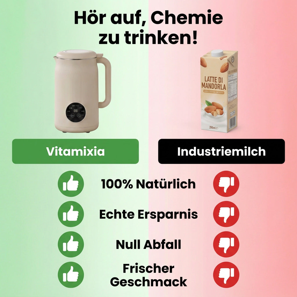 Die Zutaten (wie Hafer oder Mandeln) sind sehr günstig, du verschwendest nichts und vermeidest teure Karton-Verpackungen. Die Maschine bezahlt sich durch die Ersparnis jede Woche von selbst!